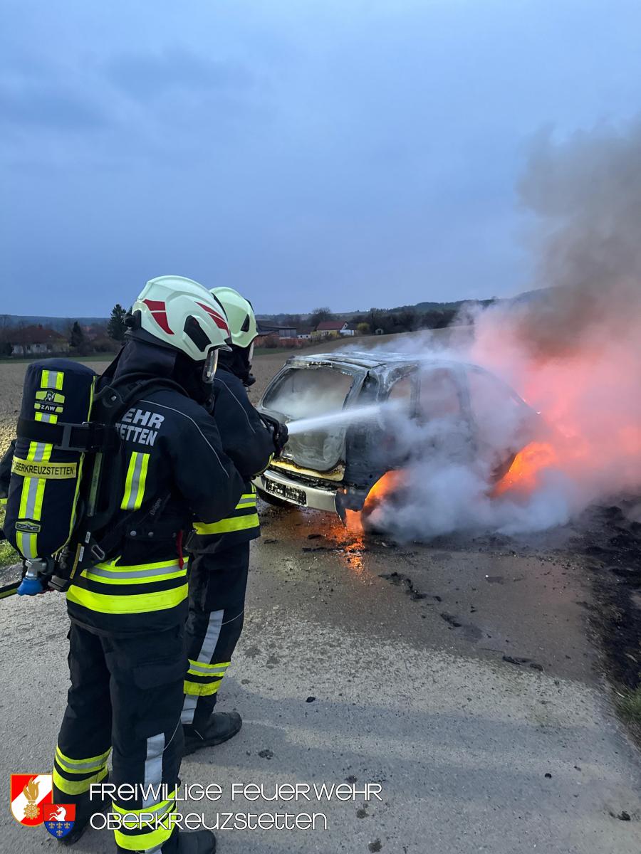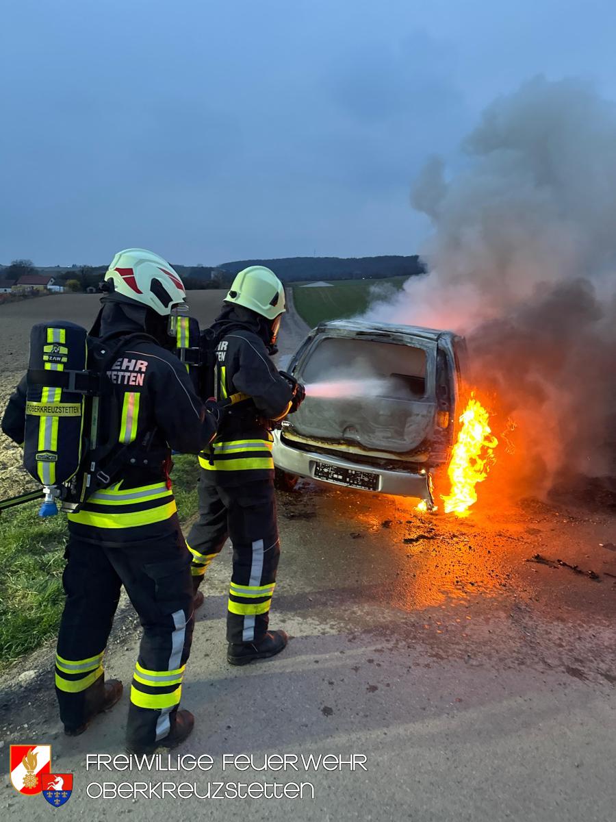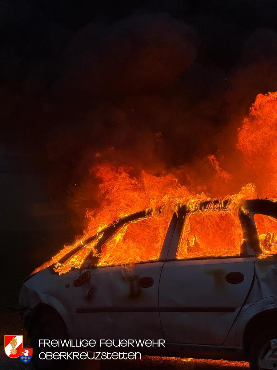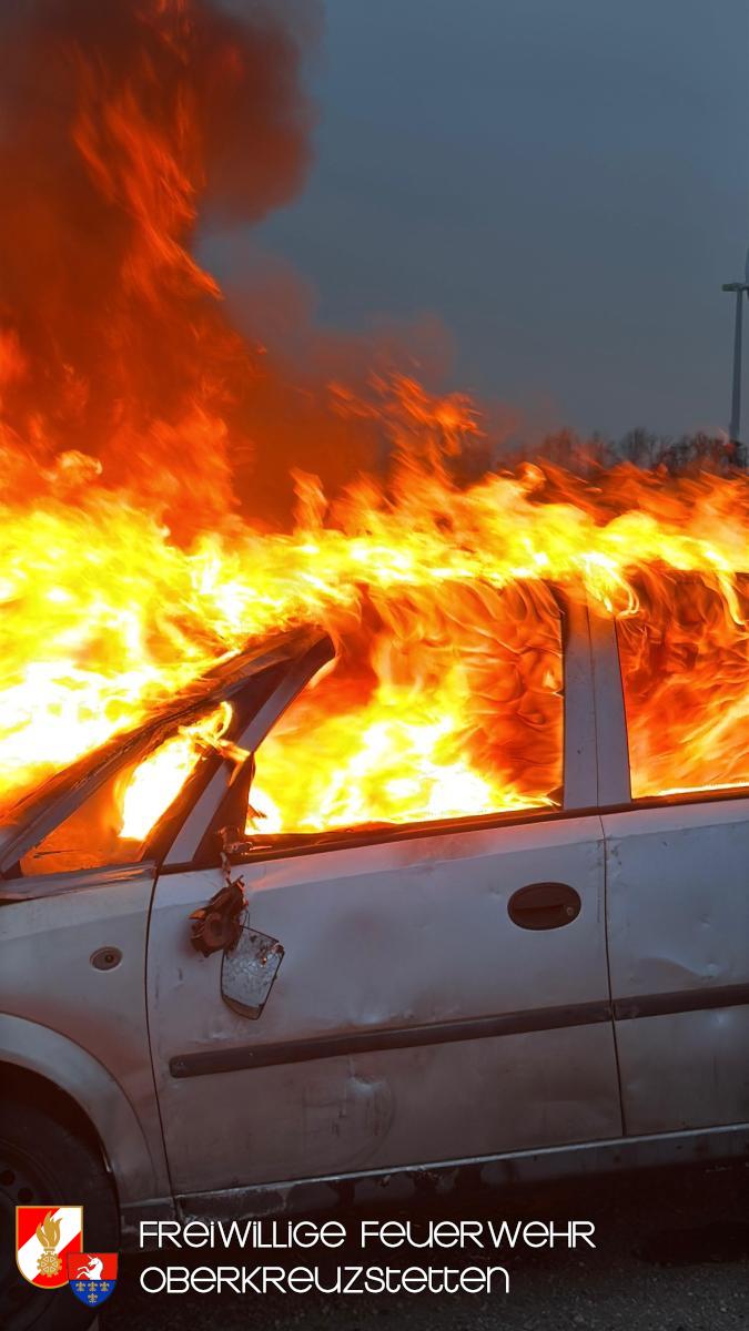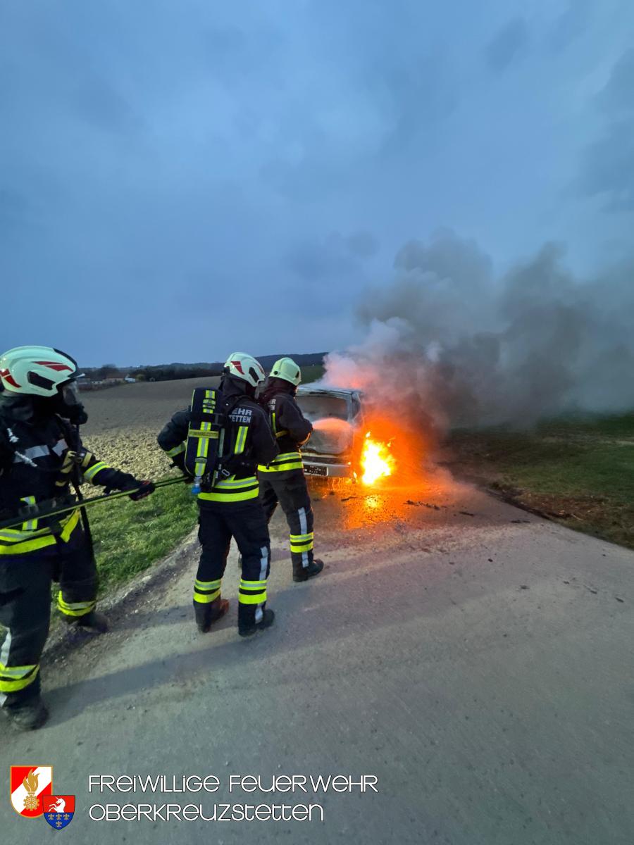 Beim Eintreffen am Übungsort stand der PKW bereits in Vollbrand. Die Besatzung des HLF1-W stellte umgehend einen Atemschutztrupp und bereitete die Schnellangriffseinrichtung für den Löschangriff vor. Parallel dazu wurde ein Pendelverkehr durch das TLF eingerichtet, um die die Wasserversorgung sicherzustellen. Der Brand konnte durch den Atemschutztrupp rasch unter Kontrolle gebracht und das Fahrzeug im Anschluss heruntergekühlt werden.