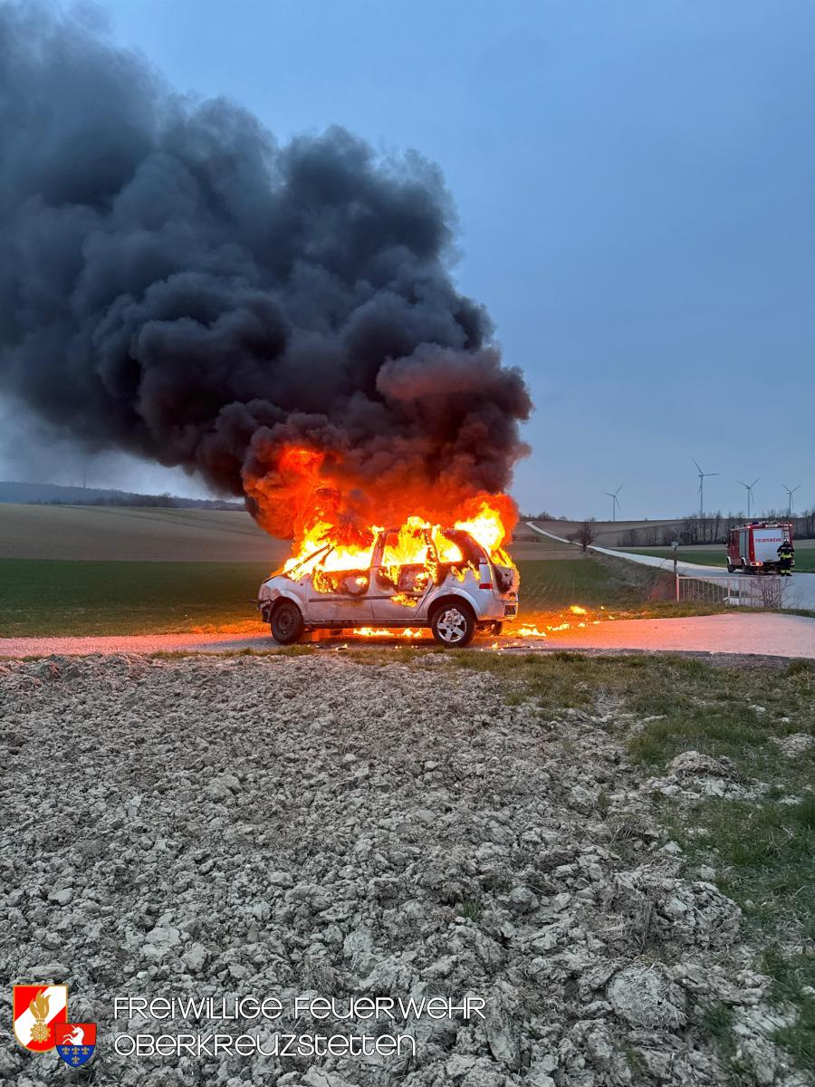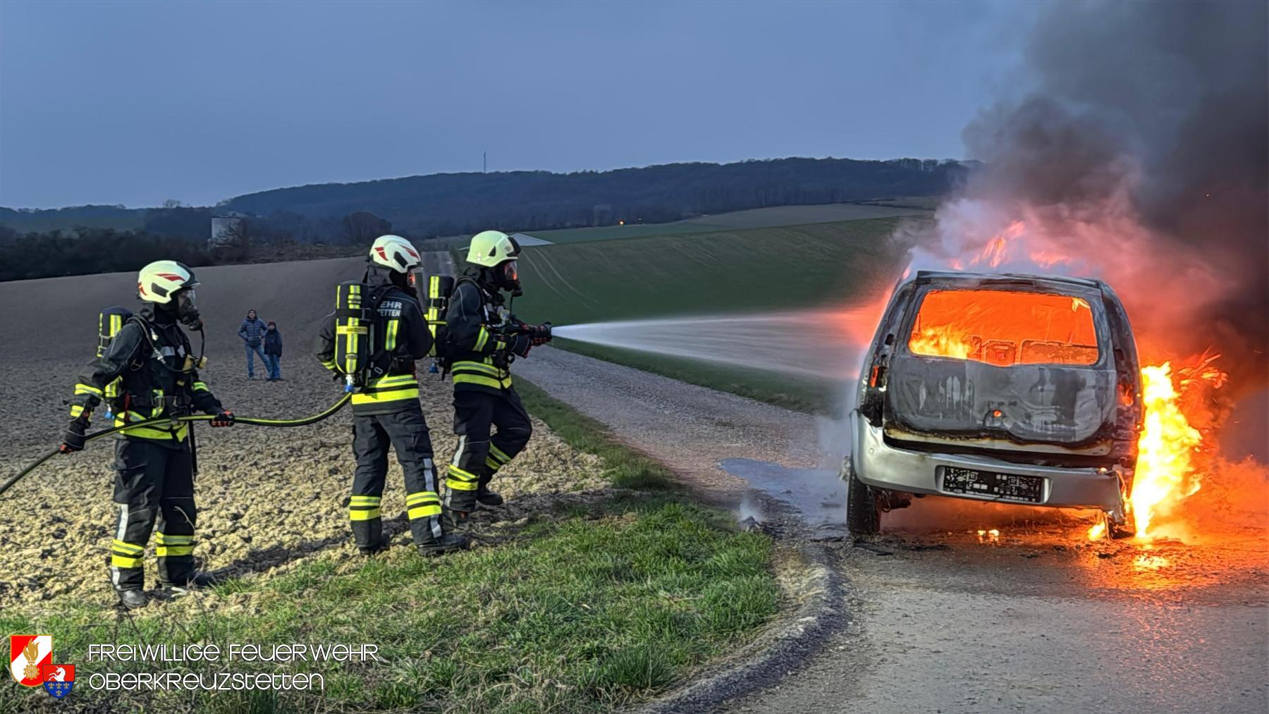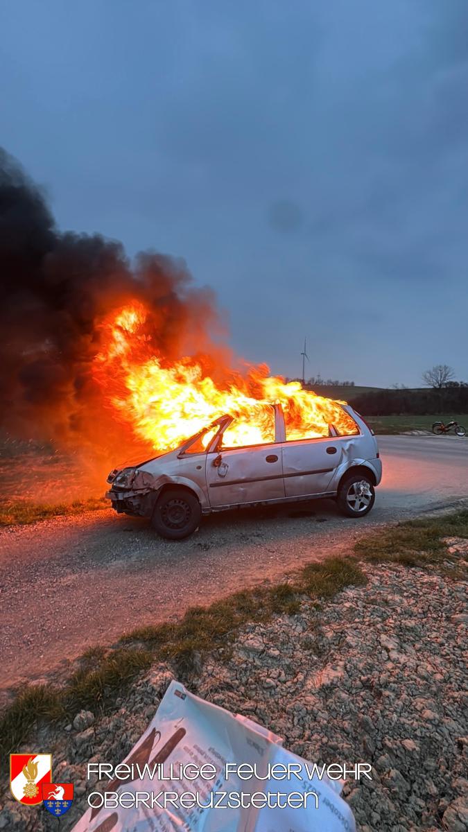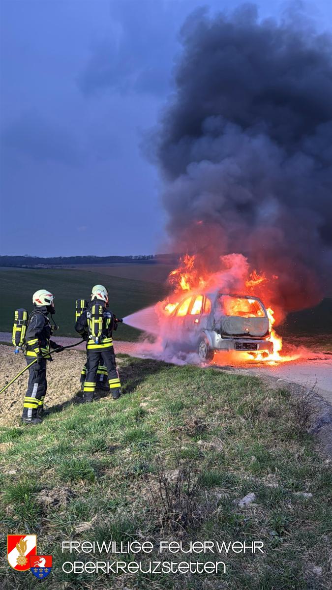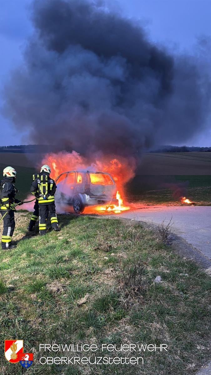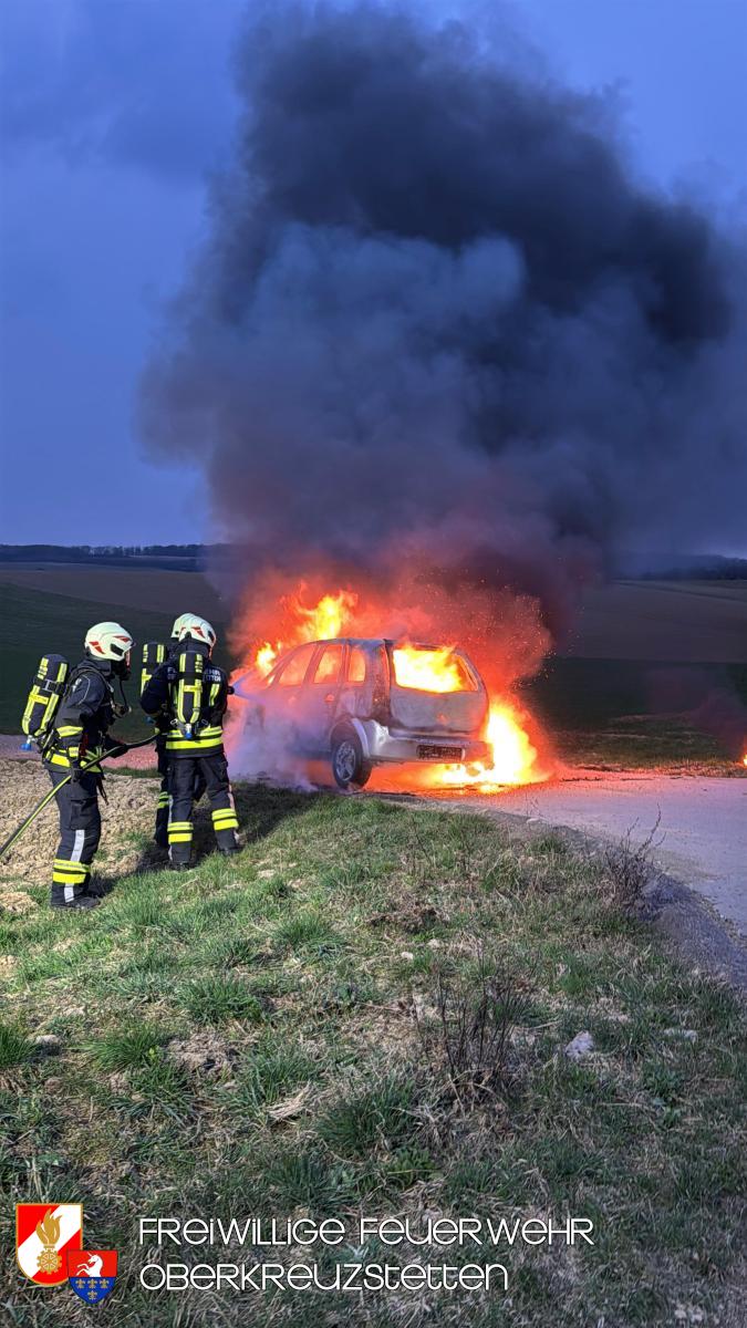 Beim Eintreffen am Übungsort stand der PKW bereits in Vollbrand. Die Besatzung des HLF1-W stellte umgehend einen Atemschutztrupp und bereitete die Schnellangriffseinrichtung für den Löschangriff vor. Parallel dazu wurde ein Pendelverkehr durch das TLF eingerichtet, um die die Wasserversorgung sicherzustellen. Der Brand konnte durch den Atemschutztrupp rasch unter Kontrolle gebracht und das Fahrzeug im Anschluss heruntergekühlt werden.
